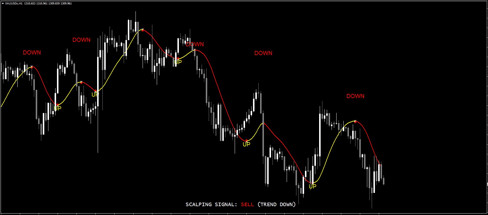 Description: A simple indicator that determines the beginning and end of the trend. Very well suited for scalping intraday. In its structure, it resembles MA changing color when changing trend, red color of sale, yellow purchase. The principle of receiving a signal (color change) is unknown, it simply determines the minima and maximum movements, depending on the settings.