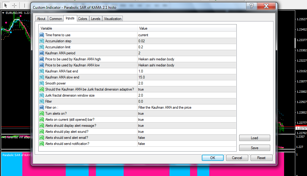 "Parabolic SAR of KAMA 2.1 histo"