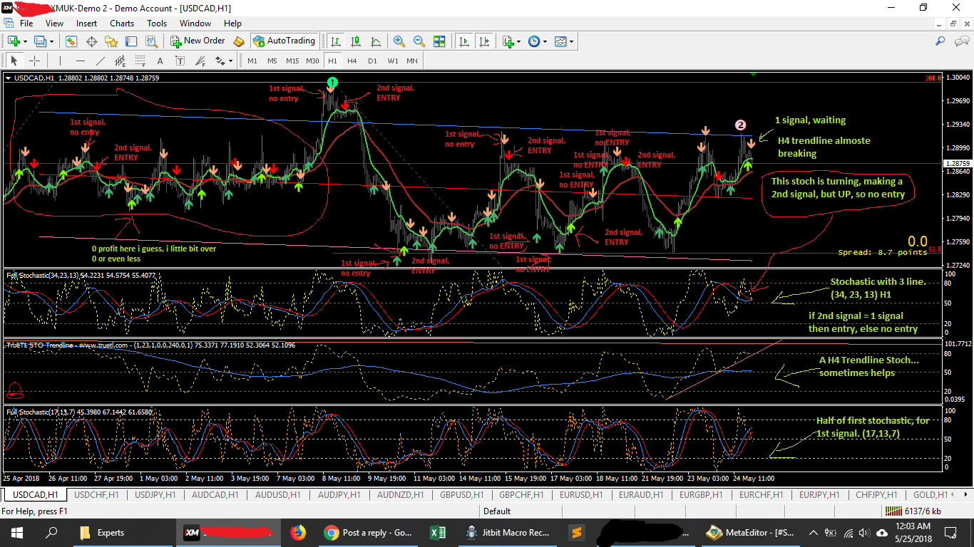Now i'm trying a dual stochastic with manual trade. Entering at 2nd signal if 1st was the same and exit at 1st signal reverse.