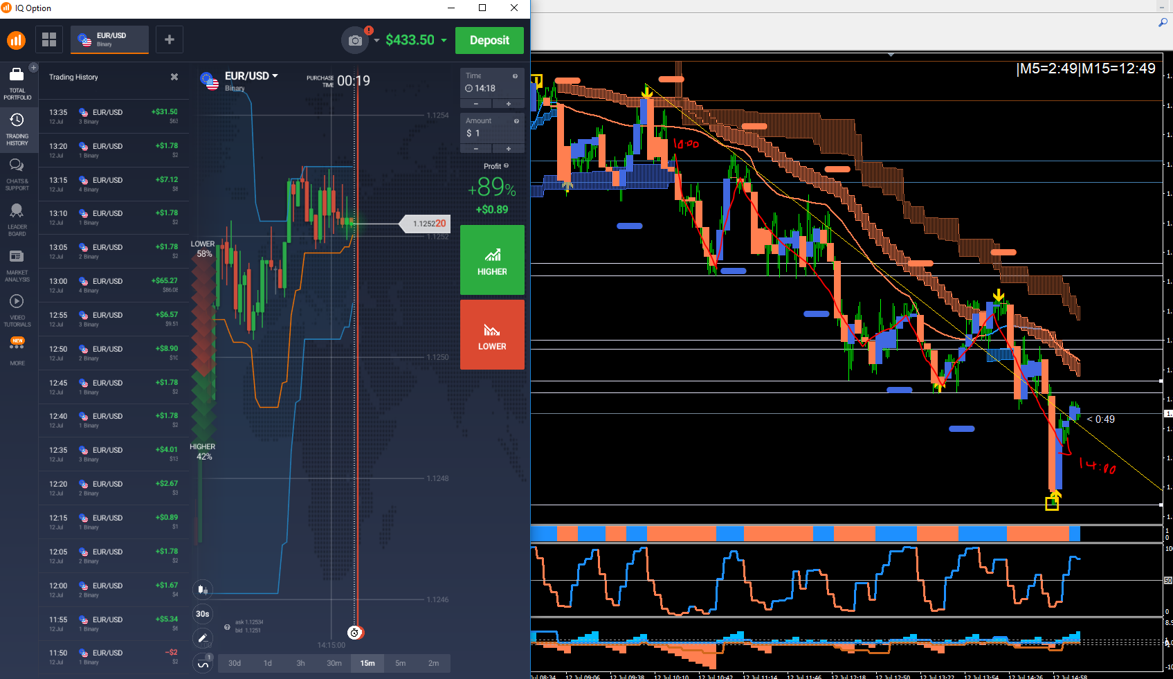 Picking up some nice S/R levels from voltlychannelsystem indi and using x2 on chart with different settings to keep me in trend.