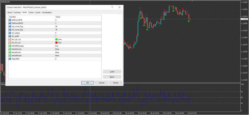 I wish for the MomPinboll.mq4 adjustable level and an alarm. When the indicator lines closes between the two adjustable levels lines there should be a sound alarm and