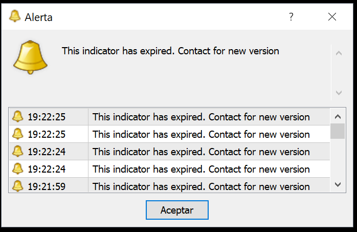 the indicator stop working, haven't made any change from normal. already checked that the names are the same and redownloaded them, but it sends a message saying it expired,