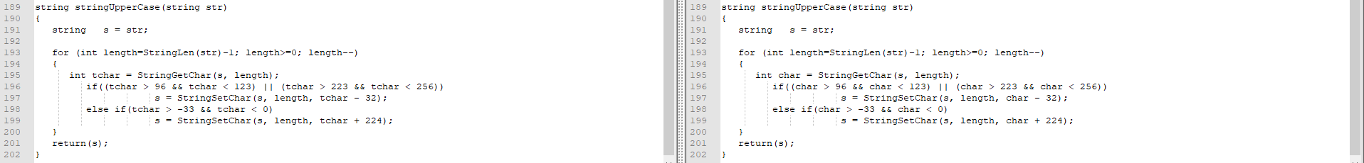 s = StringSetChar(s, length, tchar - 32);