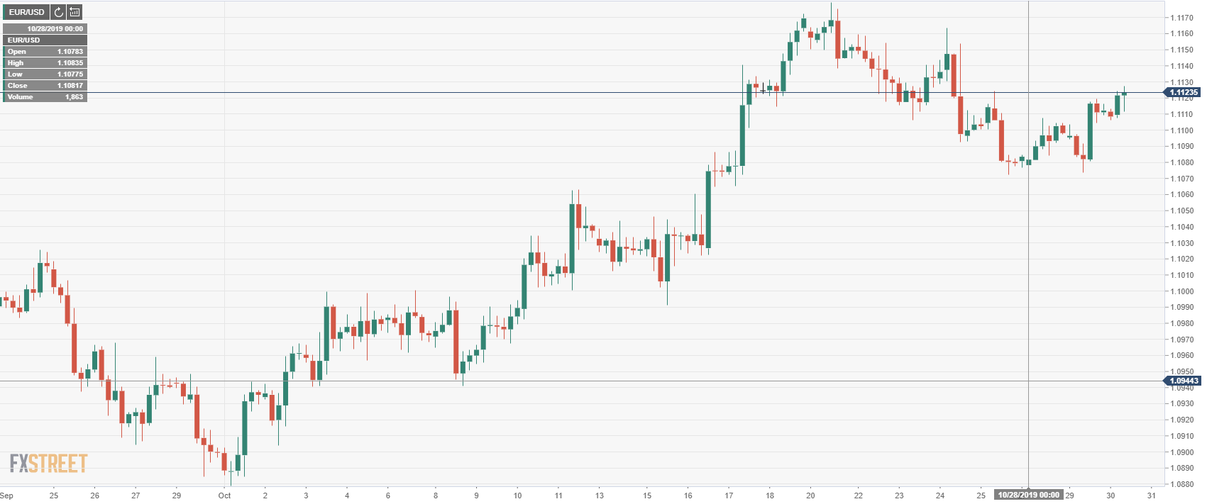 Having little time to digest all these macroeconomic releases, Jerome Powell and the Federal Reserve’s Open Market Committee will take the main stage at 18 GMT. Unanimously expected to cut interest rates from 2% to 1.75%, this will be the third consecutive rate cut for the Fed. The EUR/USD traders’ interest will be on whether the FOMC hints at more interest rate reductions or if, as the market currently expects, it is three and done.