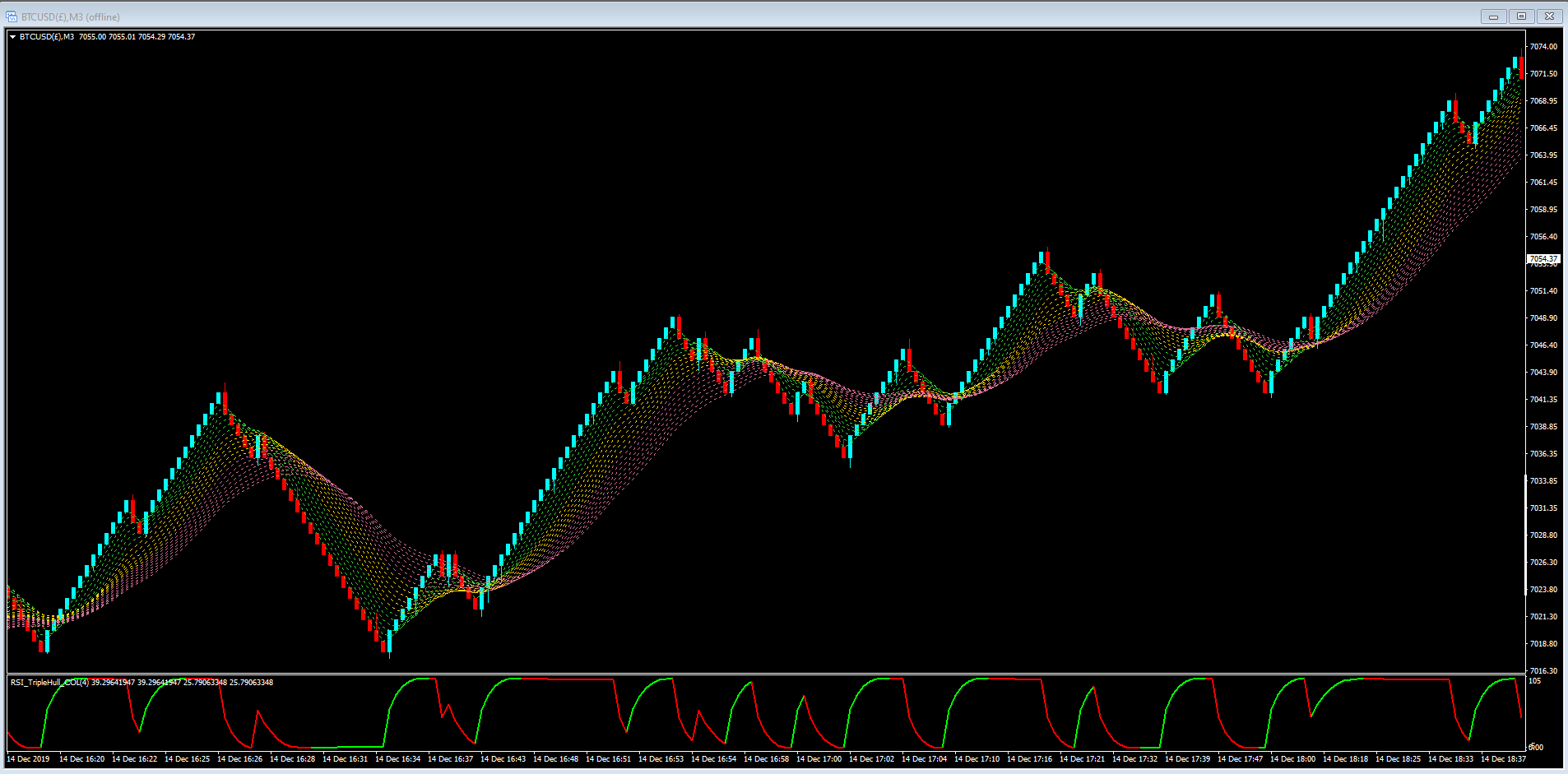 The black dotted MA is a standard 20 period smoothed and the MACD is standard minus the histo.