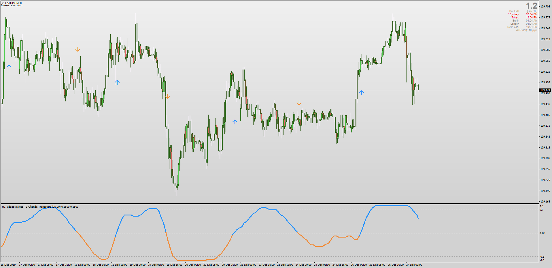 The Adaptive Step T3 Chandes Trenscore by Mladen has been kindly updated for MT4 by Mrtools & features MTF + Interpolation, Color Change on Zero line & Slope options, Arrows & Alerts making this non-repainting indicator ideal for trend trading: viewtopic.php?p=1295399956#p1295399956