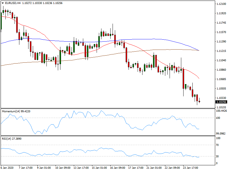 The broad-based USD strength weighed on the EUR/USD pair on Friday and dragged it to its lowest level since December 2nd at 1.1020. The mixed PMI data from the euro area made it difficult for the shared currency to show resilience against the USD, which gathered strength as a safer alternative amid heightened fears over coronavirus becoming a global epidemic.