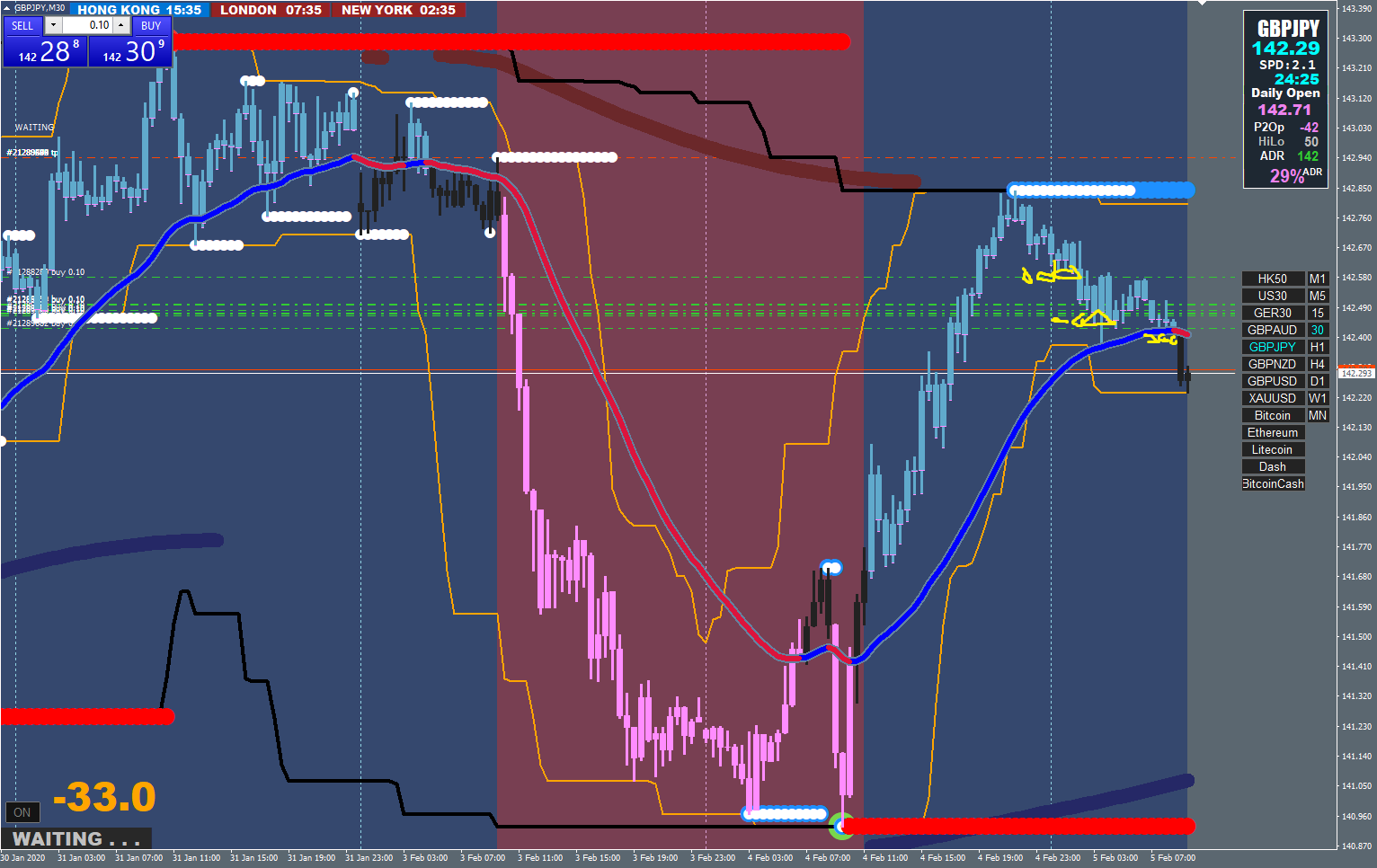 This way you can simply stay on the 30 min chart at all times and get to trade the smaller TF 2nd Dots (be it 5 min or 15 min).