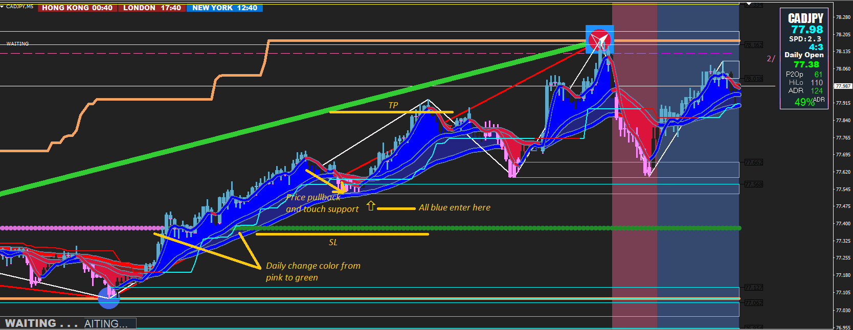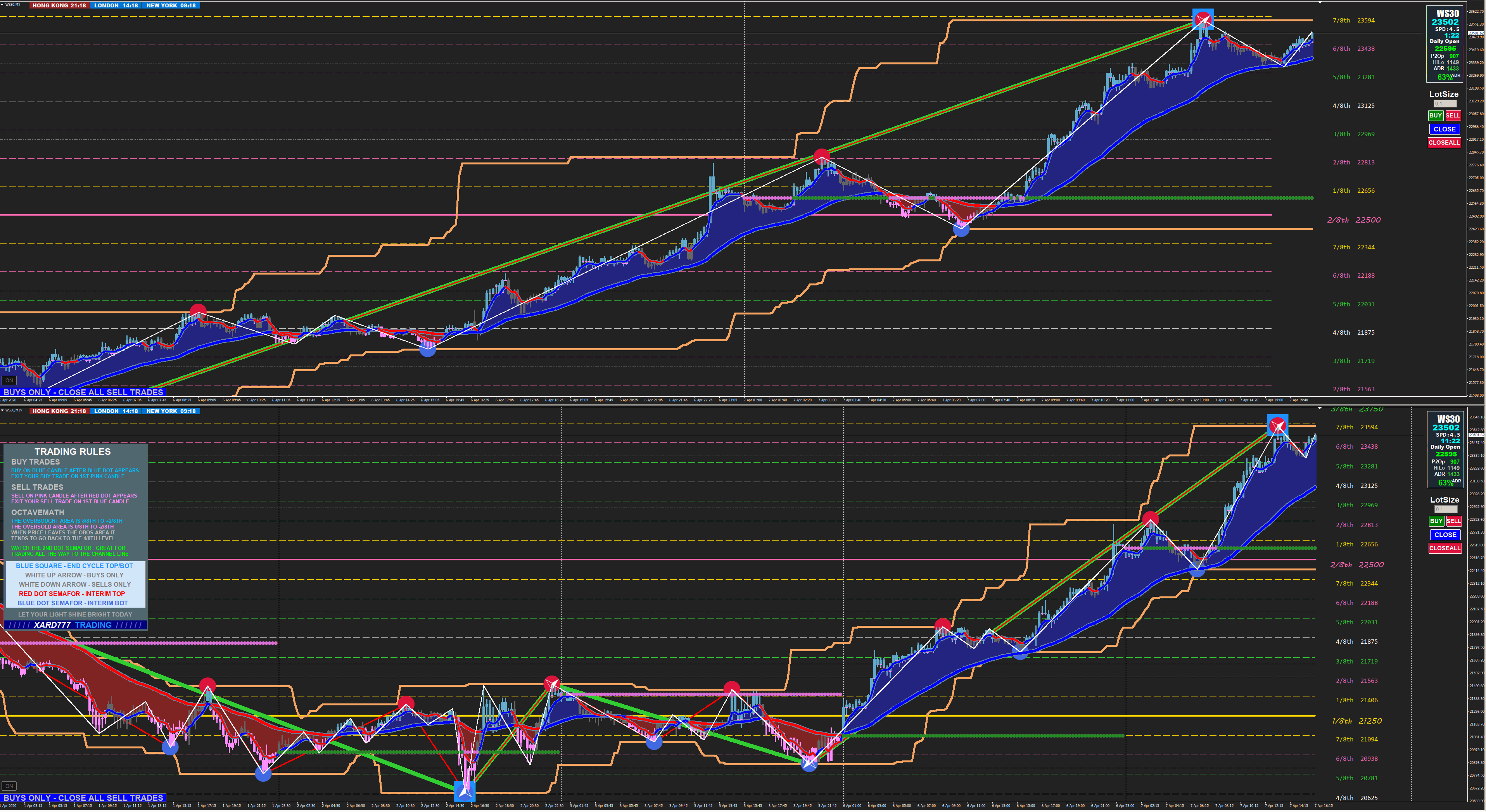 (Xard words) "When there is a Blue DOT on your chart you take Blue Candle BUY trades only, when there is a Red DOT on your chart you take Pink Candle SELL trades only.