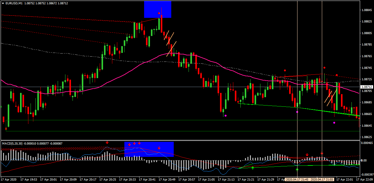 But the rule is first Macd-histogram gives divergence buy/sell signal, then within 4-6 next candles on chart, the buy/sell dot appears.