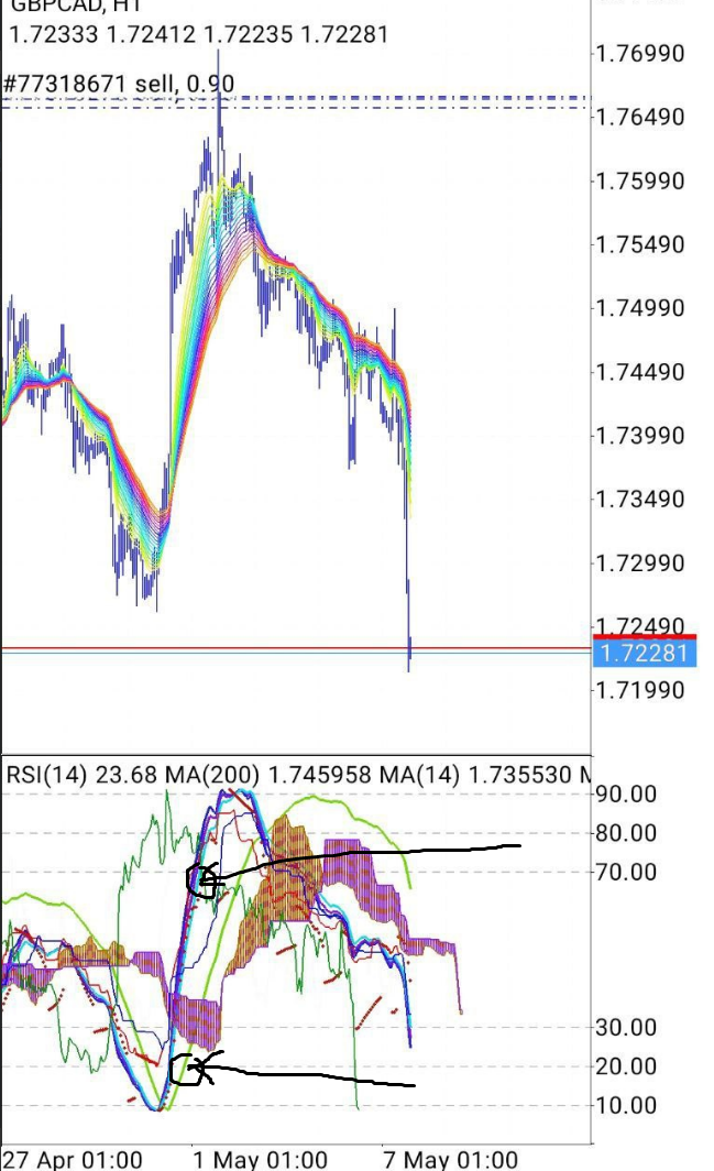 PLEASE help me find the indicators indicated by the arrow in the screenshot !!! Only MA is interested. Ichimoku and RSI last. As can be seen from the screenshots, fast MA 100% gives a profit leaving zones 10 and 90 !!! On any timeframes !!!