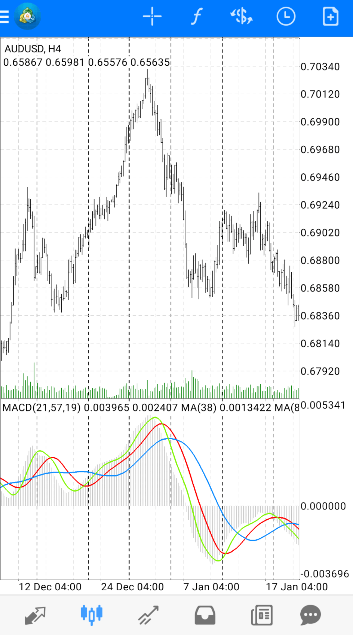 That's just a MACD on mobile MT4 app with 2 additional Moving Averages added. It wouldn't be beneficial. Those extra Moving Averages just act as a lagging confirmation, like this: