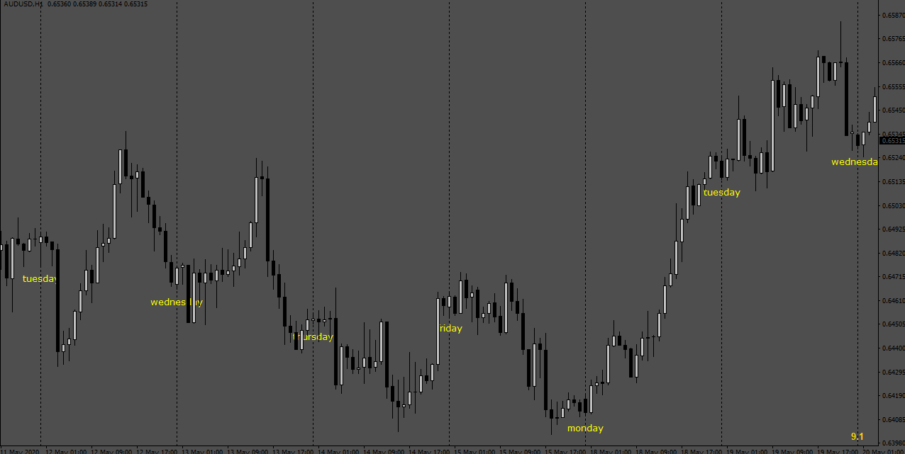 I found this Day of the Week indicator that helps with backtesting. It helps with identifying market cycles during the week.
