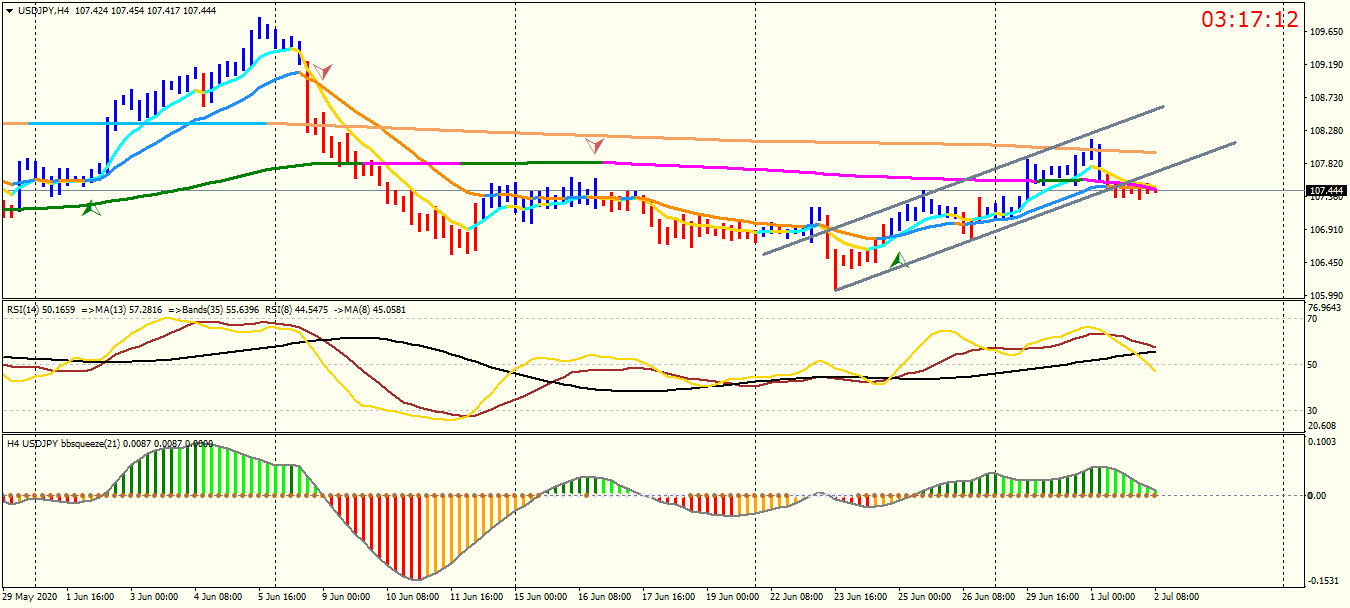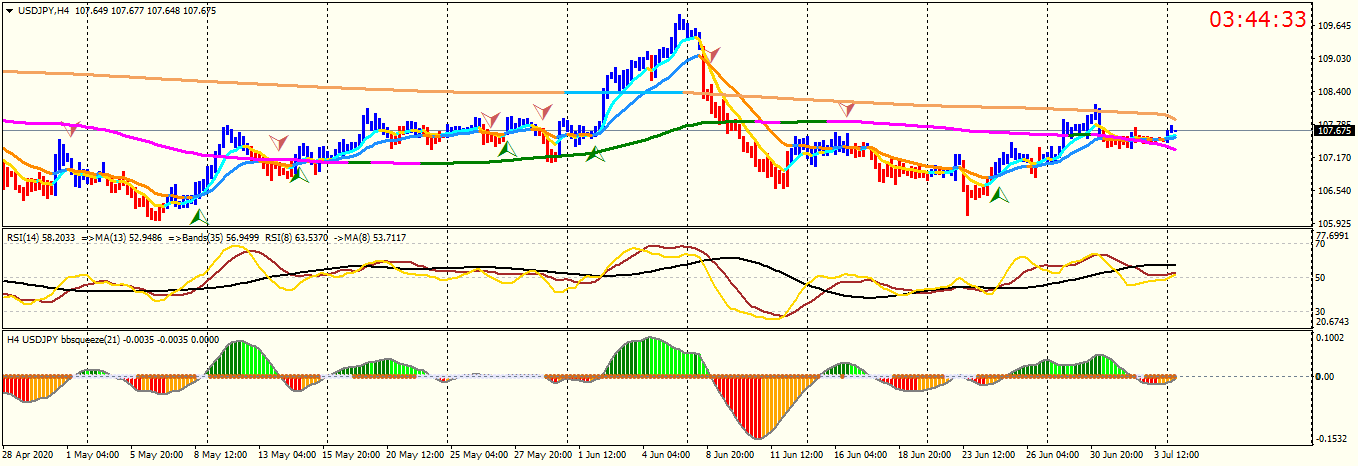 648#USD/JPY : did not show a reliable signal on H4 ,, I mean two movings cross ,,,macd & rsi wrote: Thu Jul 02, 2020 3:52 pm #USD/JPY :