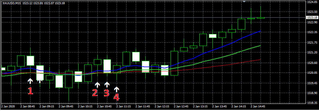 if the up arrows are drawn when Fast MA>Medium MA>Slow MA