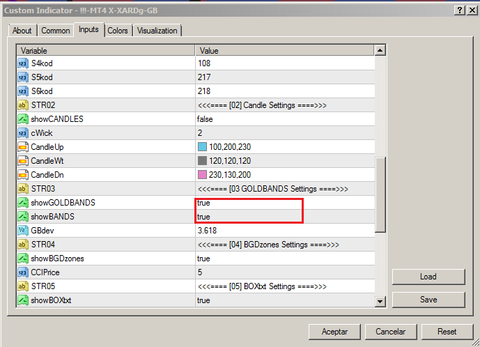 Just change to true options in the setup of this indicator.GetProfit wrote: Sat Jul 18, 2020 11:51 pm Can you tell me what the indicator shows Gold Bands. I can't find it because of my very poor English.