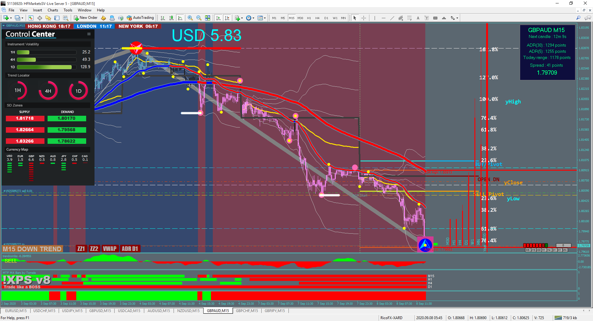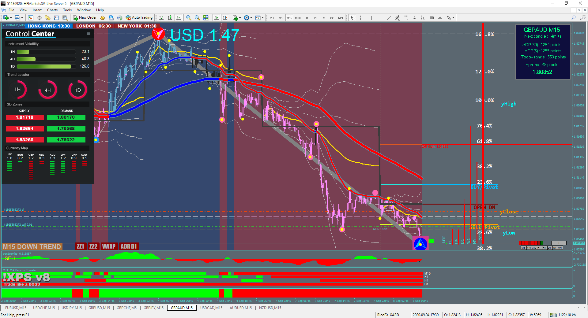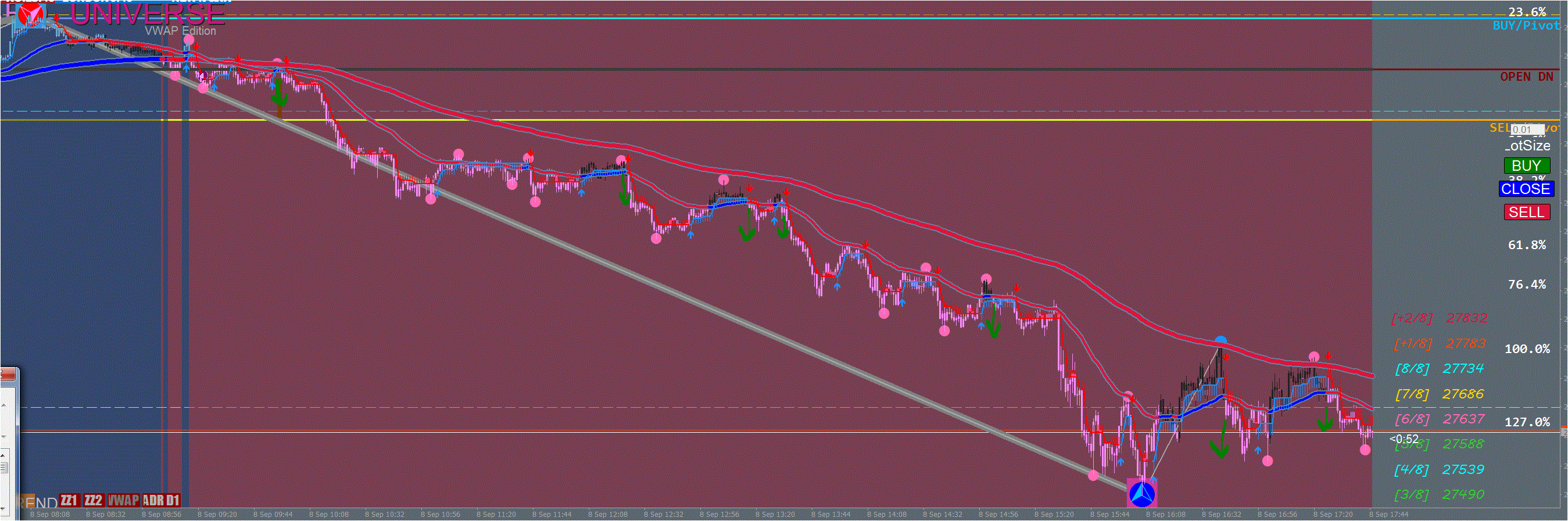 Notice the Fractal SupRes dashed lines on the charts?