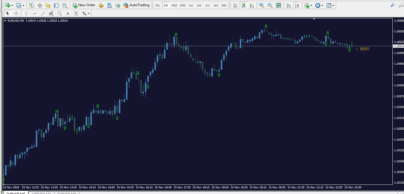 nice one.. if its not repaint on next bar after time frame expired .this will be mostly a good indicator that we can trust for trade for 5min expiry in 5min chart.