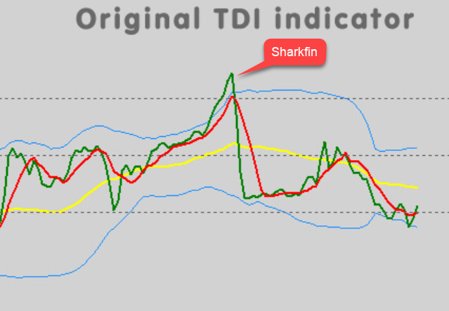 Nope, a Shark Fin is where the RSI (green) goes outside of the blue bollinger bands, it often looks like a shark fin, but it shows overbought/oversold better. It would give less signals than the standard RSI red/green cross, but they're often a warning of a reversal coming up.