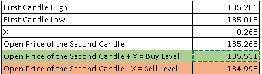 Open Proce of the Second Candle + X = Buy Level
