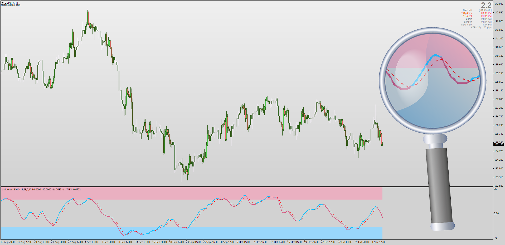 W. Blau created the SMI (Stochastic Momentum Index) as a leading indicator to signal early shifts in momentum, allowing traders to precisely time entries/exits for profit. Mrtools' new, non-repainting version now includes his colored OBOS Zones + more: viewtopic.php?p=1295422529#p1295422529
