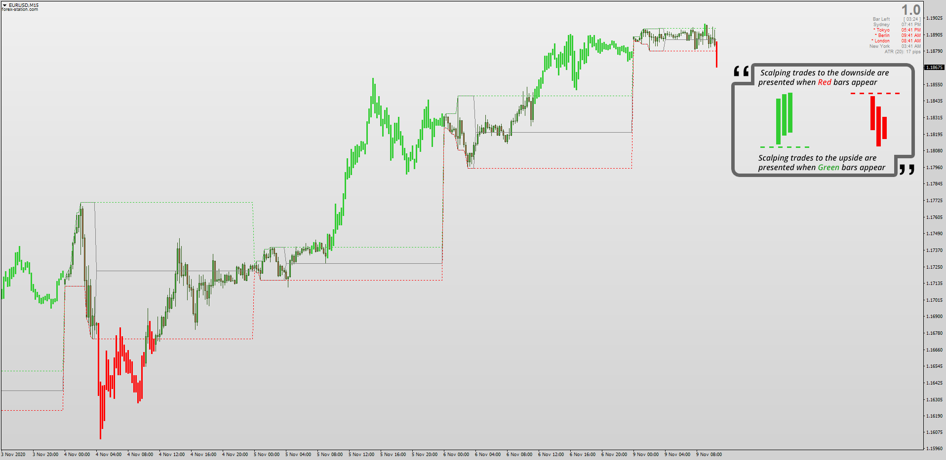 The Intraday Channel Breakout indicator by Mladen is a code that checks intraday values & displays breakouts of those values by highlighting the candlesticks/bars. Optimized by Mrtools for MT4, this version is Ideal for scalping (4H Chart & below only): viewtopic.php?p=1295422698#p1295422698