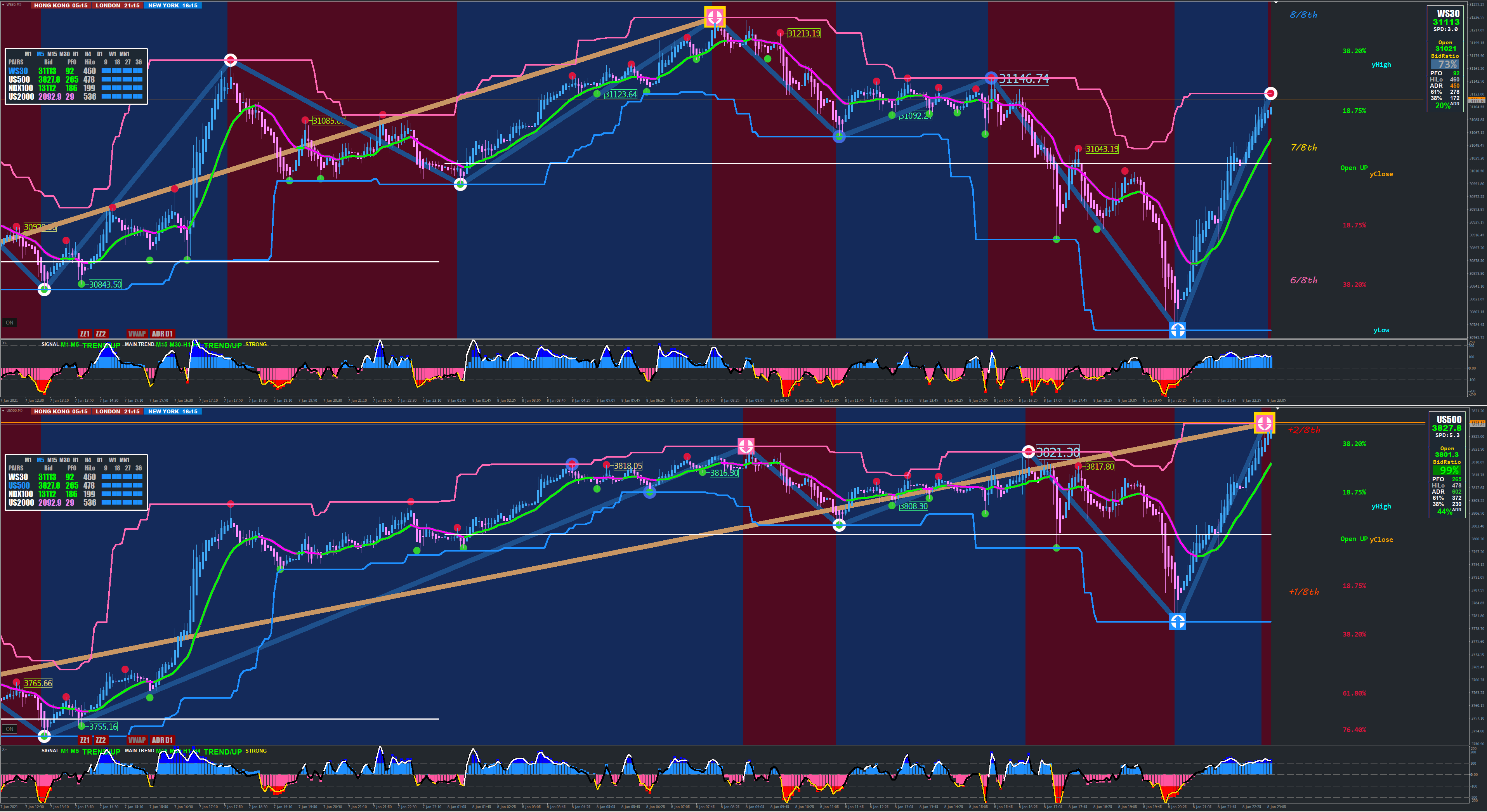 The slow MA is 143 simple and the fast MA is 21 smoothed.