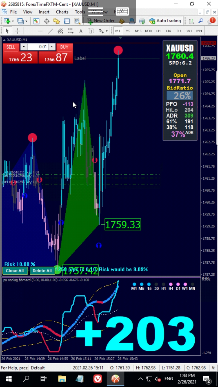 6143Is this 1M and why is the background blue?maroka wrote: Fri Feb 26, 2021 10:41 pm After taking trades off the triangle, I'm trying to see how possible it is to hold the trade until the perimeter dot appears.