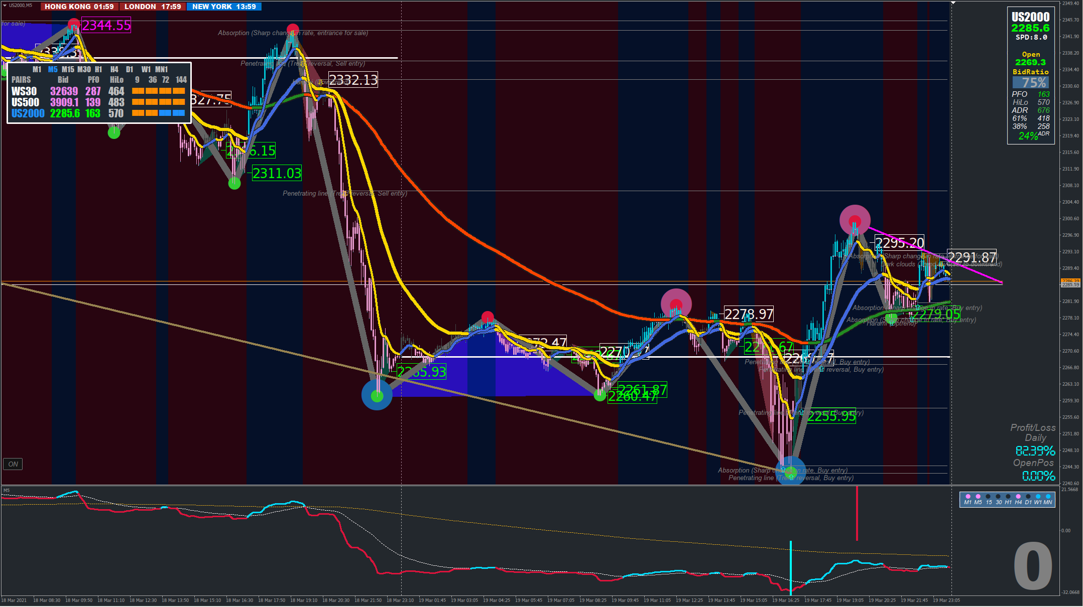 short term directional bias on M5 = EMA9