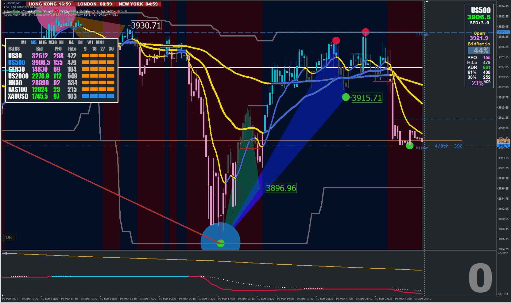 Directional bias on higher TF = M15 (5x3=15; i. e. (M)15 = 3x (M)5)
