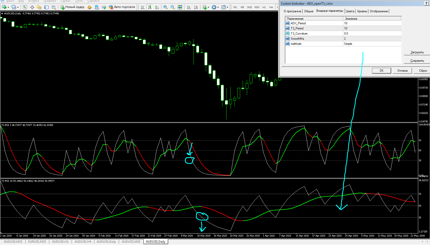 For daily, period 3 is better, because this is half of the trading week and the signals are better. This is a certain cyclicality of the market and the indicator settings need to be done accordingly.