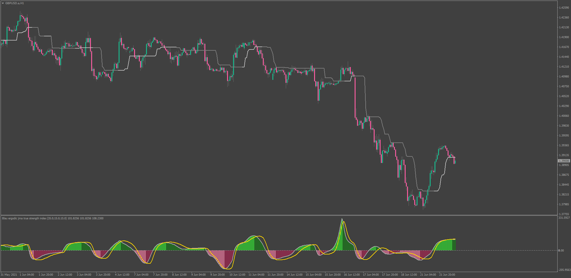 In your main chart you're using a 15-period Jurik Half Trend, right? Because your lines seem much more curvy than mine on the same chart