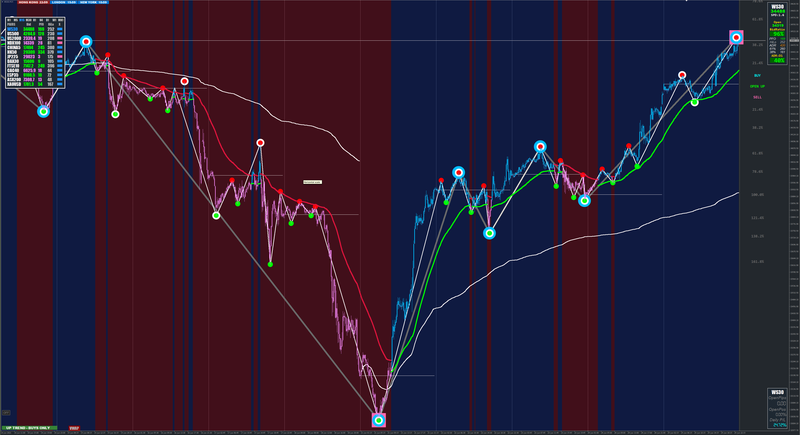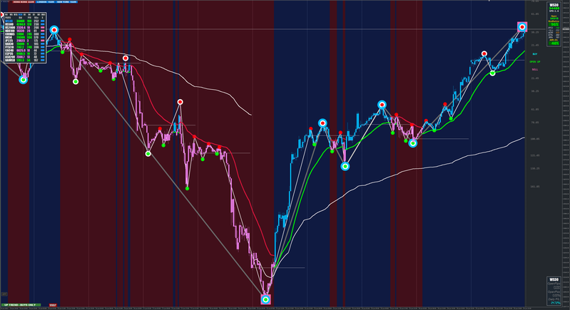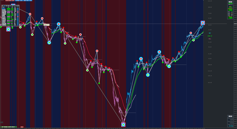 The below chart is a stripped back version of the current update for clarity purposes only. The trigger points are from Xards candle colour change on different time frames.