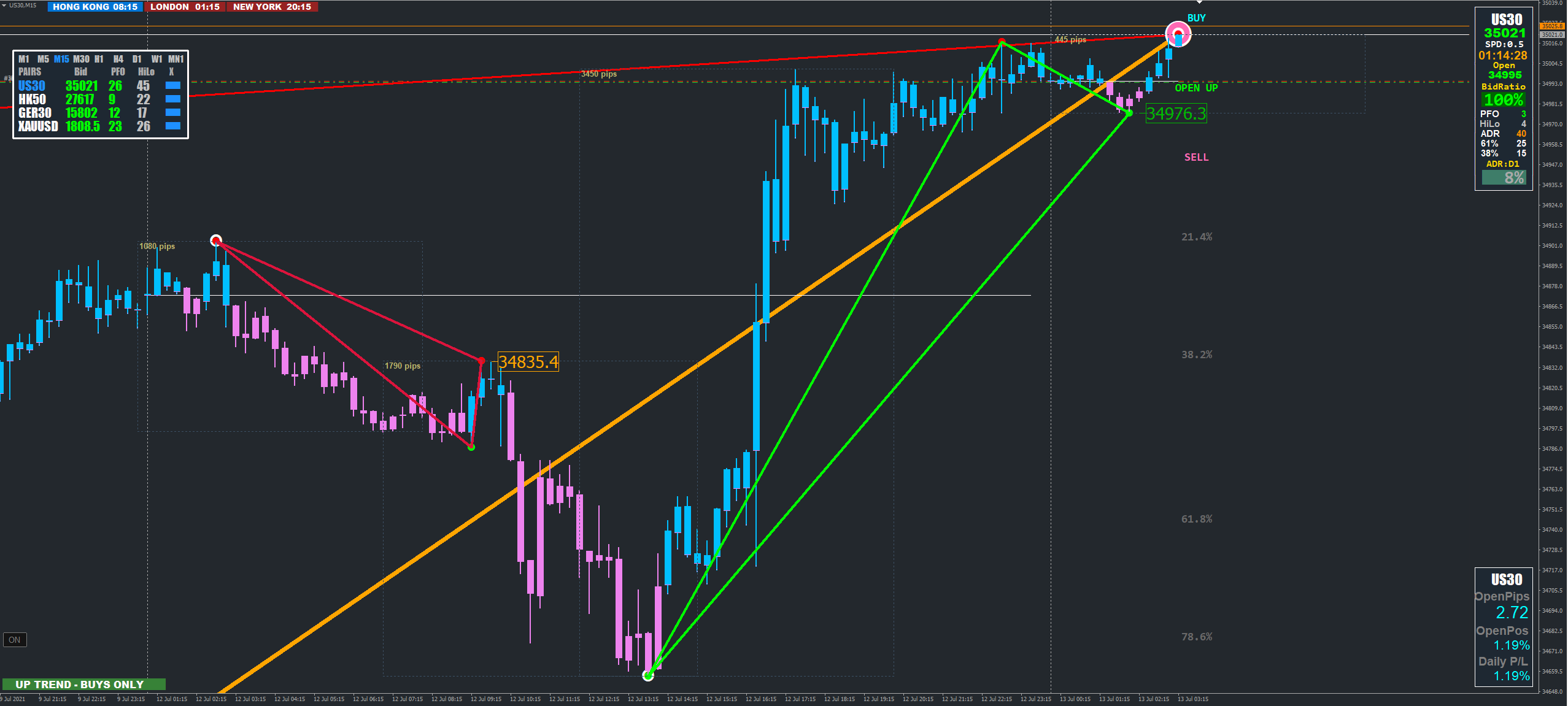 what times were you trading the AU200 and were you using the standard 1h and 5M to do your trading off?