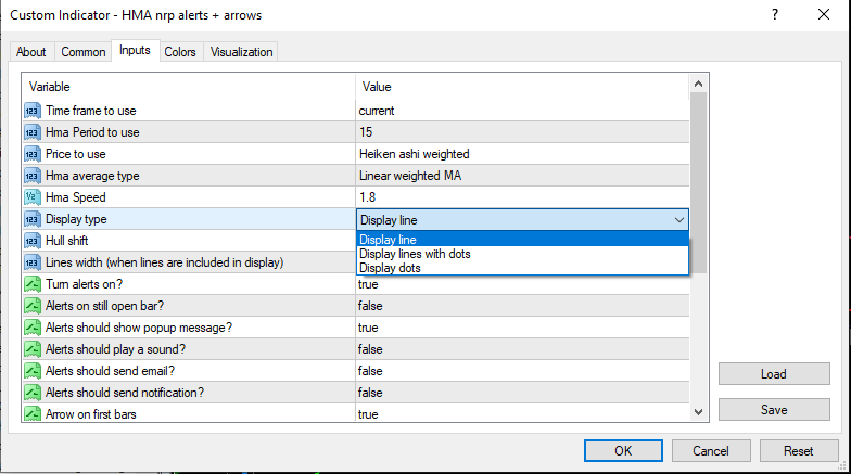 554Hi, you need to change the 'Display line' input to display with dots.Sukulam wrote: Thu Aug 05, 2021 6:28 am Hello all, I have downloaded this indicator but I am unable to see the arrows which I think forms part of the overall indicator?