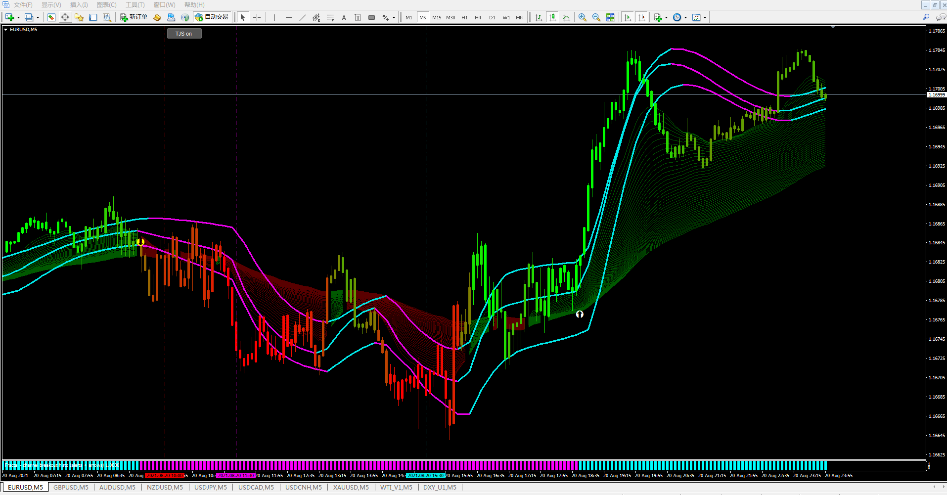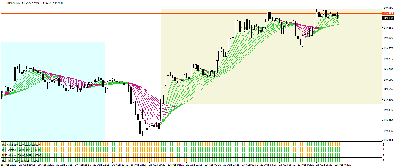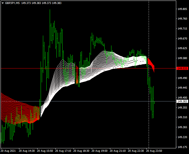 Yes i did that but it only shows one moving average that too if i select the period...doesn't show up as in the picture above...and i can't even see any option to input the number of MA's we need...i thought it would be like Banzai's Average's Rainbow indicator. Please explain.