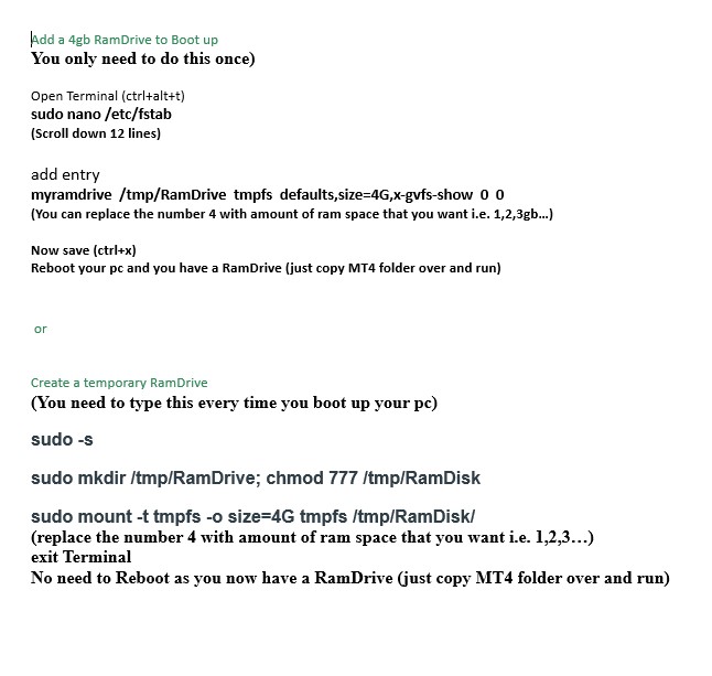 8327Please can someone help me. My MT4 is freezing with Xard system on it. How do I move MT4 package to RAM Drive. I just created a virtual Memory using Mntiwana's advice but don't know what to do next. Xard RAM drive setup advice in the enclosed picture seems to be for a different OS maybe Linux. THANK YOU