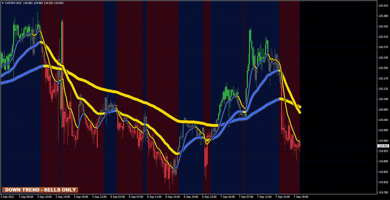 Use the Orange ZigZag line on the 15m chart as your Intra-Day Bias. WAIT! for the candle colour change for your first trade and use the Channel line as your 1st EXIT target, take additional trades off the 2nd dots (dots 2,4,6...) that appear and look for a higher Semafor as your 2nd EXIT Target.