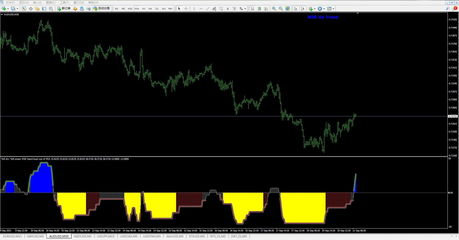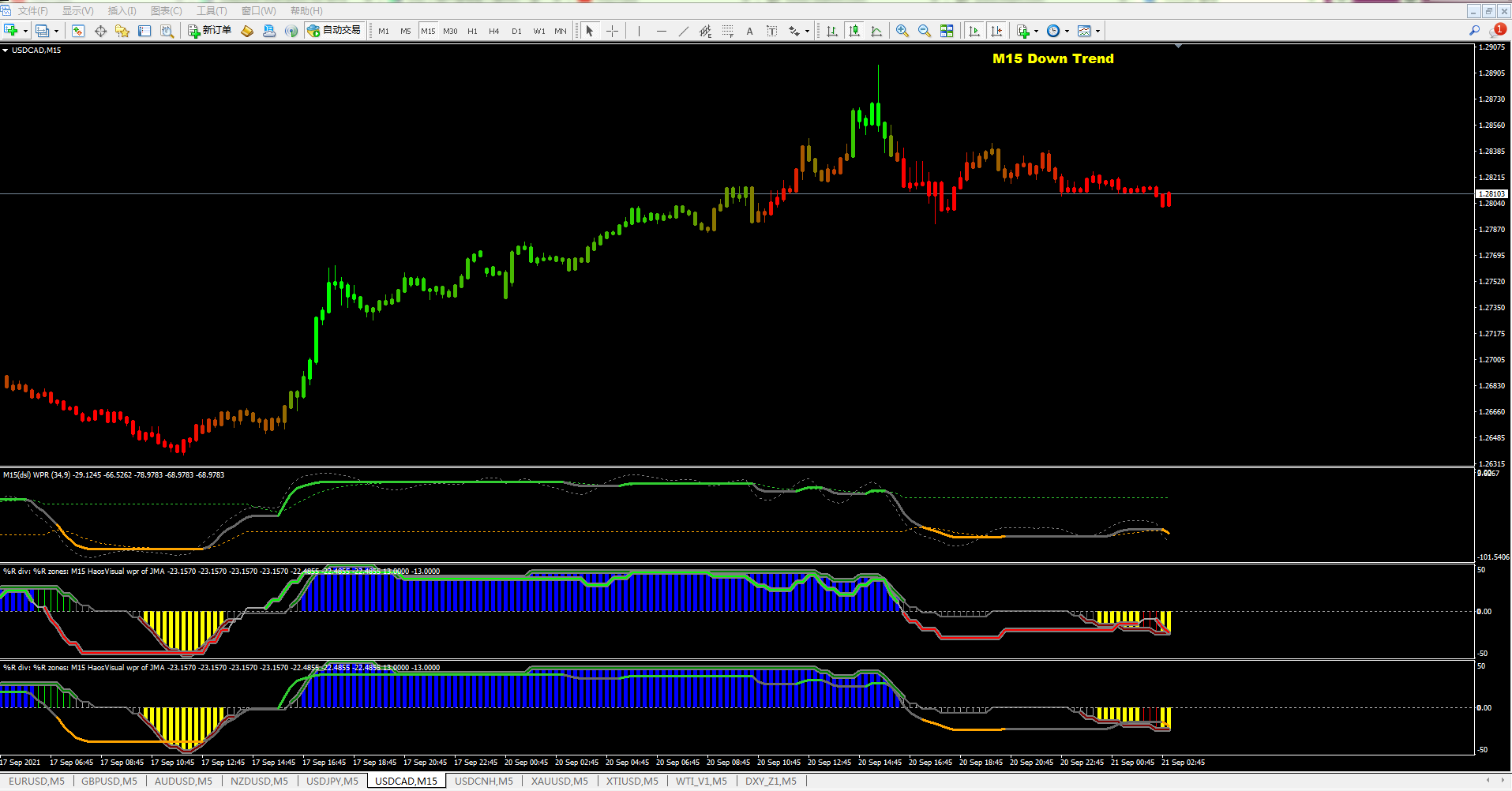 2. Make the text ID signal "H1 Down Trend" as shown in the figure, consistent with the thick blue vertical line, the thick yellow vertical line, or the blue arrow and the yellow arrow.