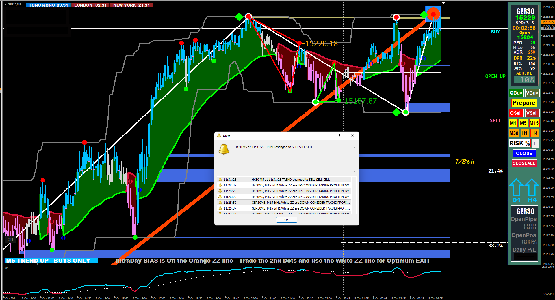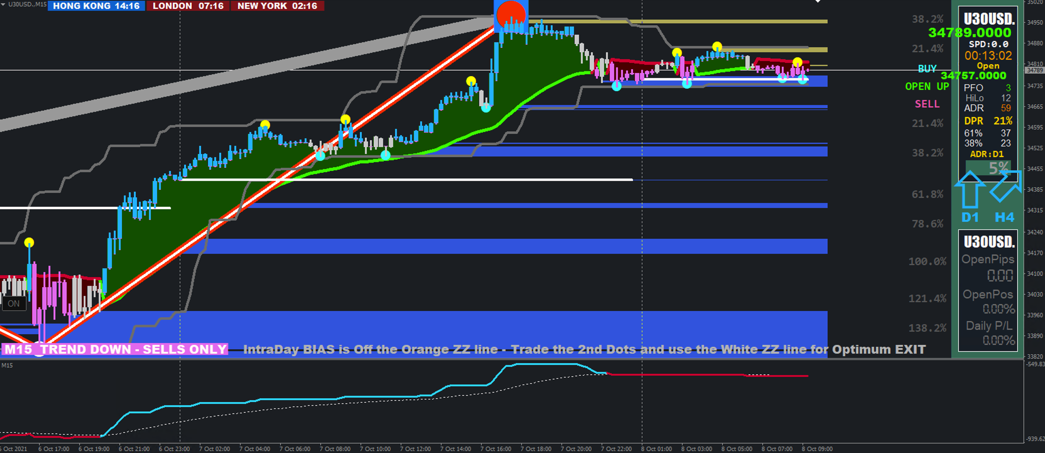 Yes, you are correct the bias is down on M15 and below, the H1 and H4 have not shown a second dot as yet. So time to sit on your hands and wait for the H1. The yellow lines indicate resistance levels off the previous highs which may or may not be a level for a new high.FourXXXX wrote: Fri Oct 08, 2021 5:52 pm Thanks FourXXXX.