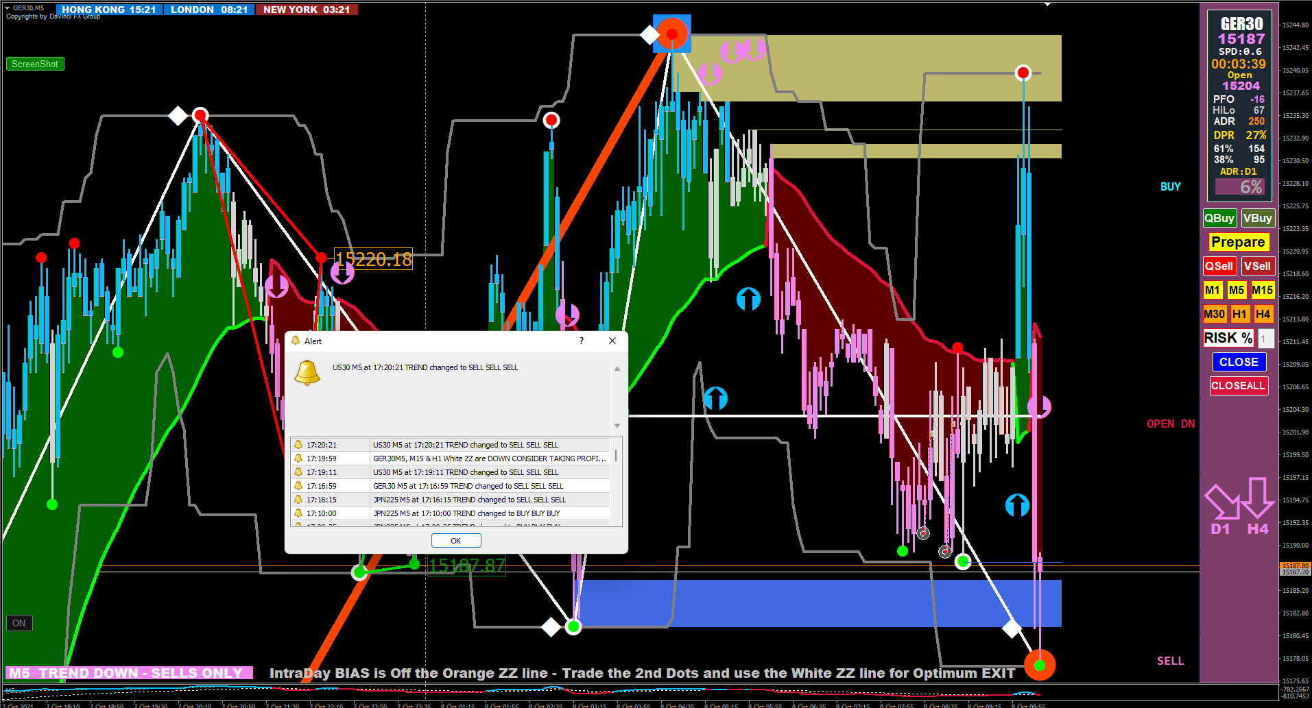Yes, you are correct the bias is down on M15 and below, the H1 and H4 have not shown a second dot as yet. So time to sit on your hands and wait for the H1. The yellow lines indicate resistance levels off the previous highs which may or may not be a level for a new high.normannasty wrote: Fri Oct 08, 2021 5:24 pm Thanks FourXXXX.