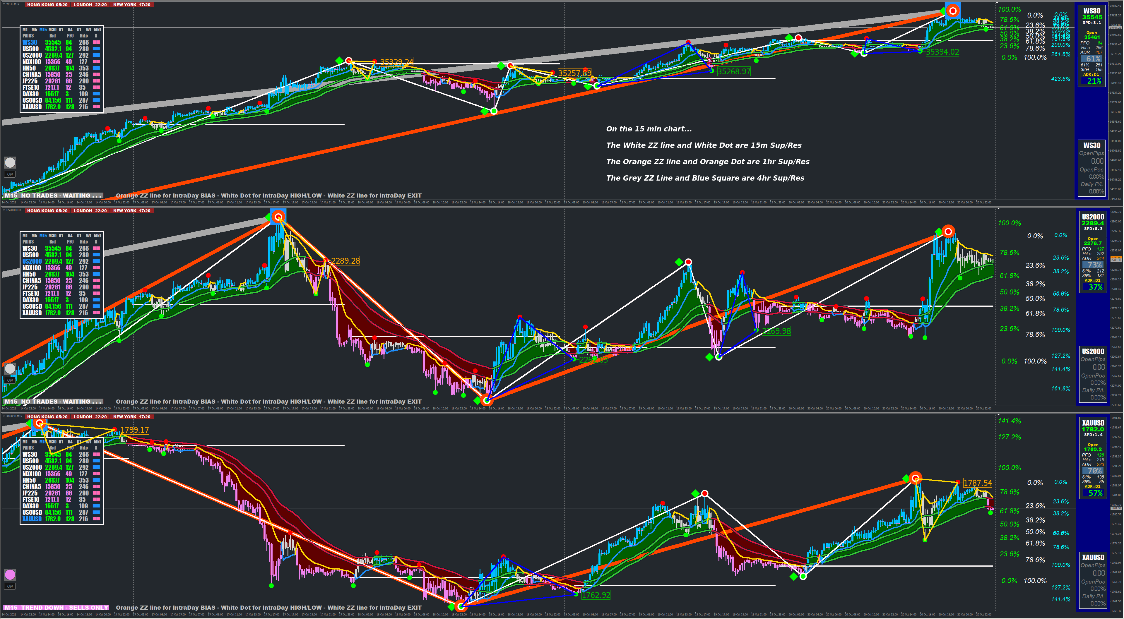 The white percentages D-C is the retracement from D of the last ZZ leg, smaller numbers here indicate the trend is likely to continue in the direction of D.