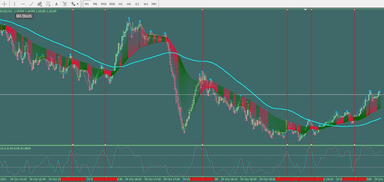 The short-term MAs are typically set at 3, 5, 8, 10, 12, and 15 periods.