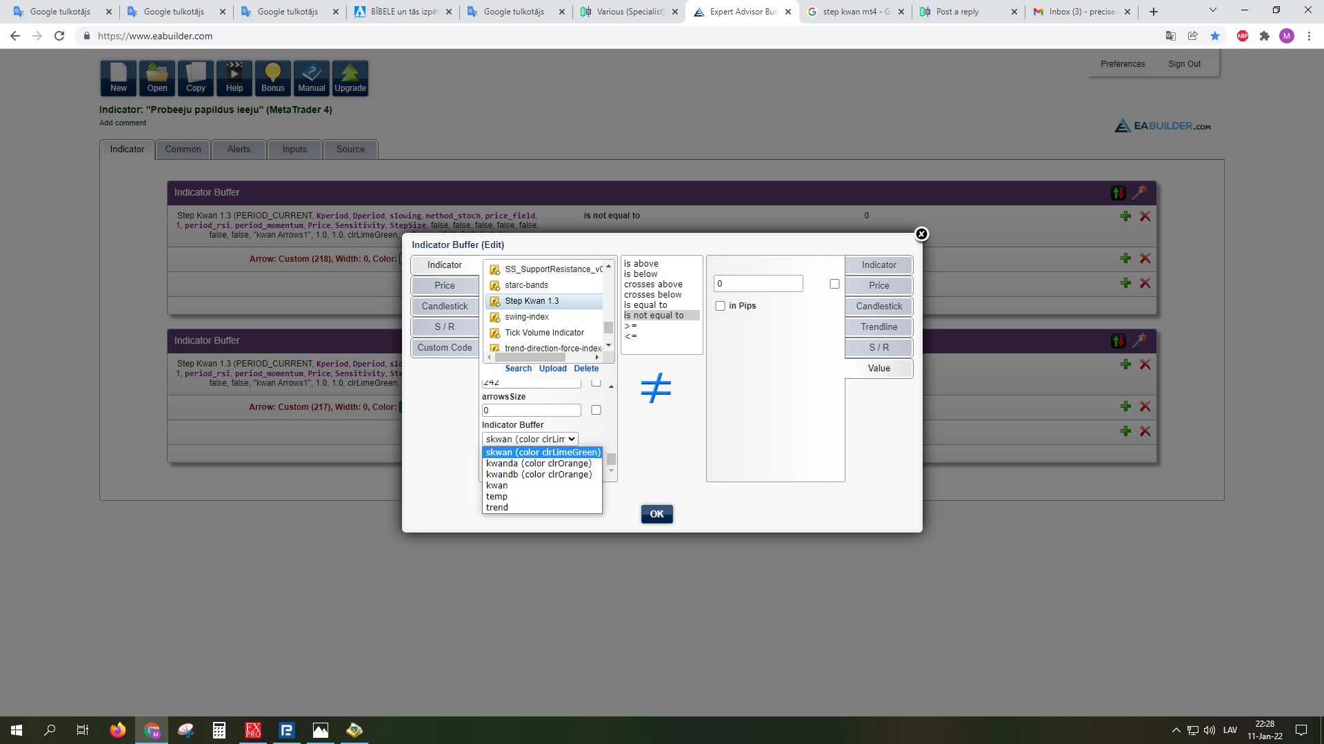 Si buen hombre, no funciona properly. Yes good man, it doesn't work properly. SELL buffer works but BUY buffer does not work.mrtools wrote: Wed Jan 12, 2022 6:56 am Yeah and reading your post you said you built an indicator using step kwan and it wasn't working.