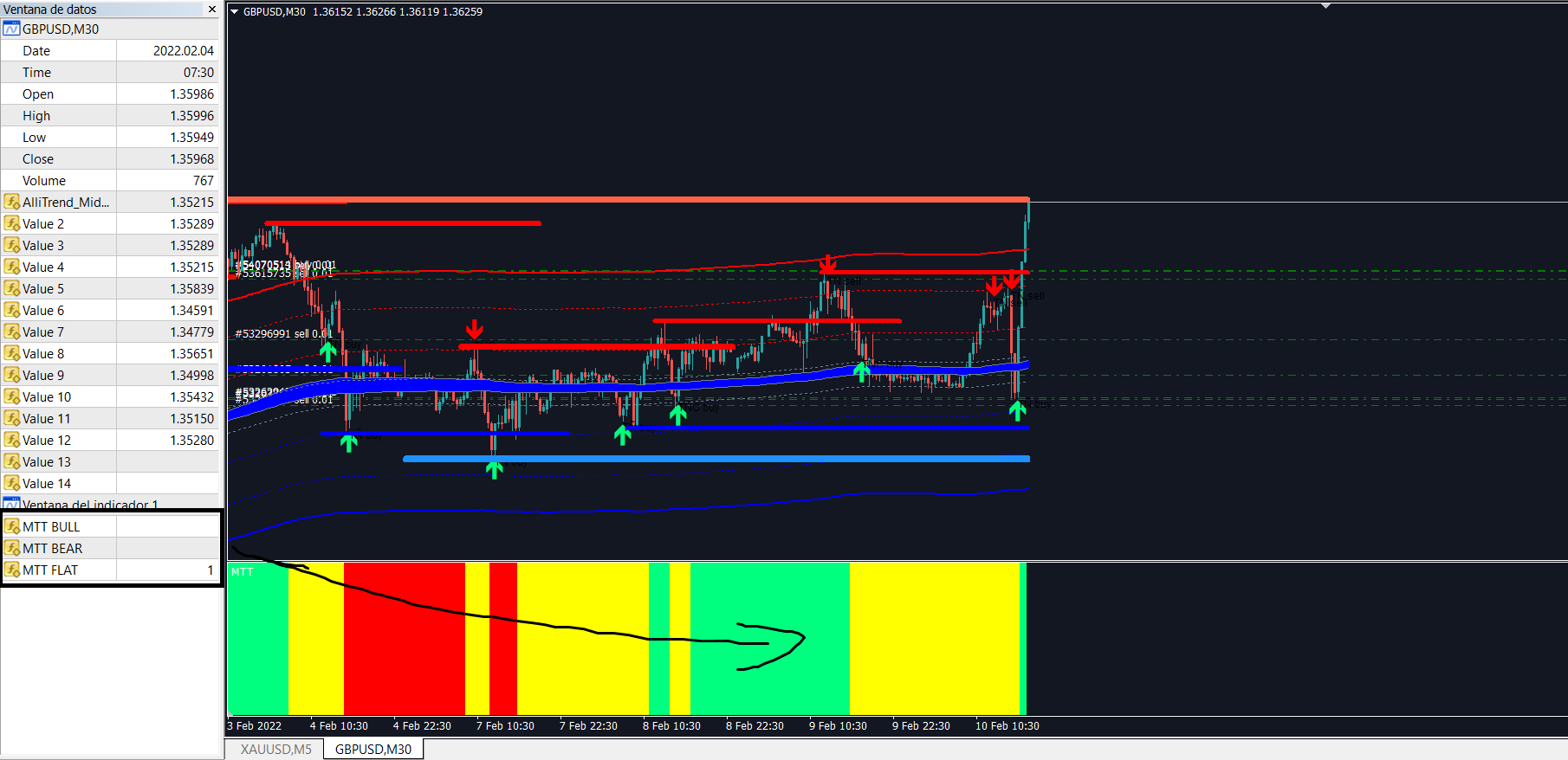 2Hi, i could help if arrows had buffers, but the only buffers for that indicator are the histogram ones, and i dont see any relation between histogram and arrows.Mescalito wrote: Thu Feb 10, 2022 1:51 am Hello everyone, I was a bit hesitant on asking for a favor on my first post but I think we could all benefit from this system, it is based off 3 indicators, 2 for trend and the other for entries, when the arrows appear bellow the middle range for shorts the stop loss should be placed above the bands, when the arrows appear above the middle range for longs the stop loss should be bellow the bands, if the arrows appear outside of the bands for shorts or longs the stop loss should be placed above or bellow price according to the ATR, all profits should be taken when an opposite arrow appears, trend is dictated by the middle range changing color.