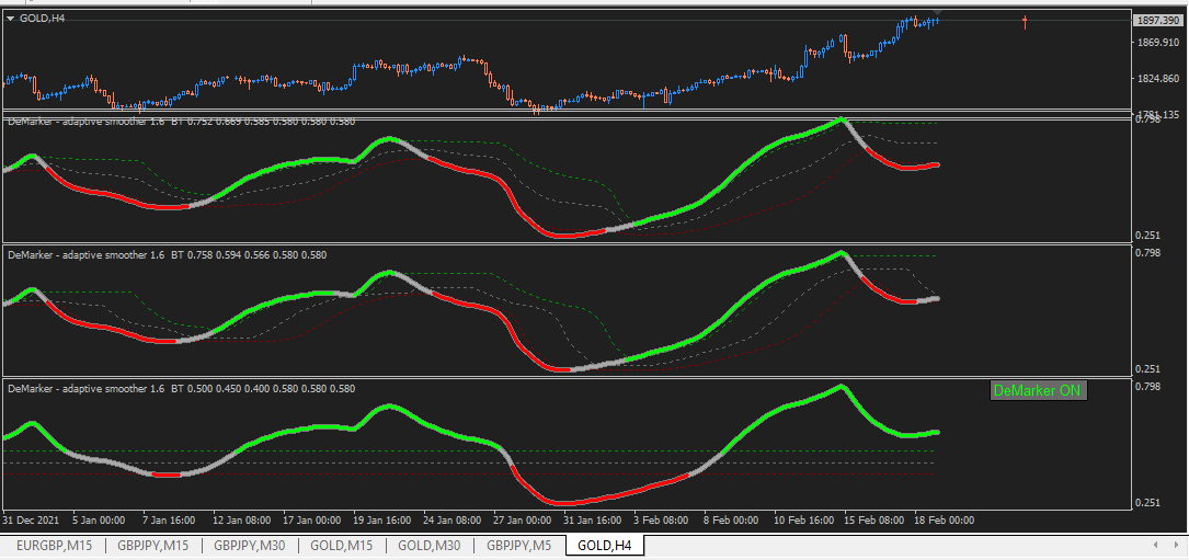 Looking forward to mrtools and kvak teachers to further upgrade DeMarker - adaptive smoother 1.5 BT .mq4, add Quantile levels and main chart arrows. Infinite merit!