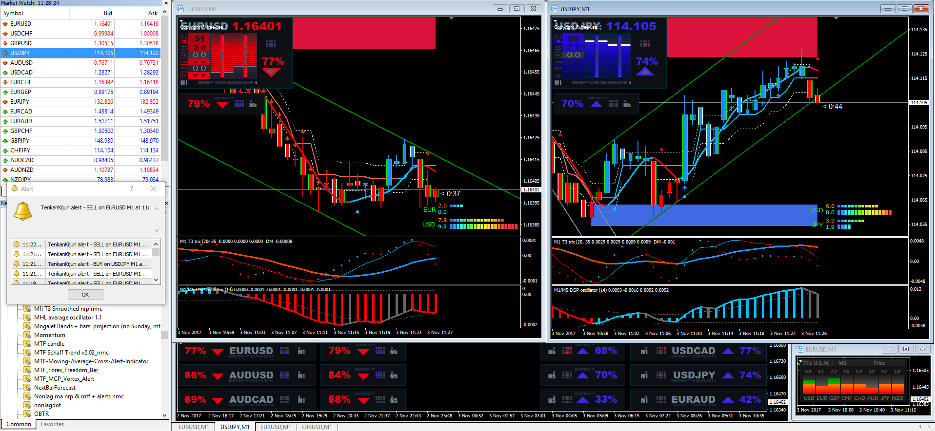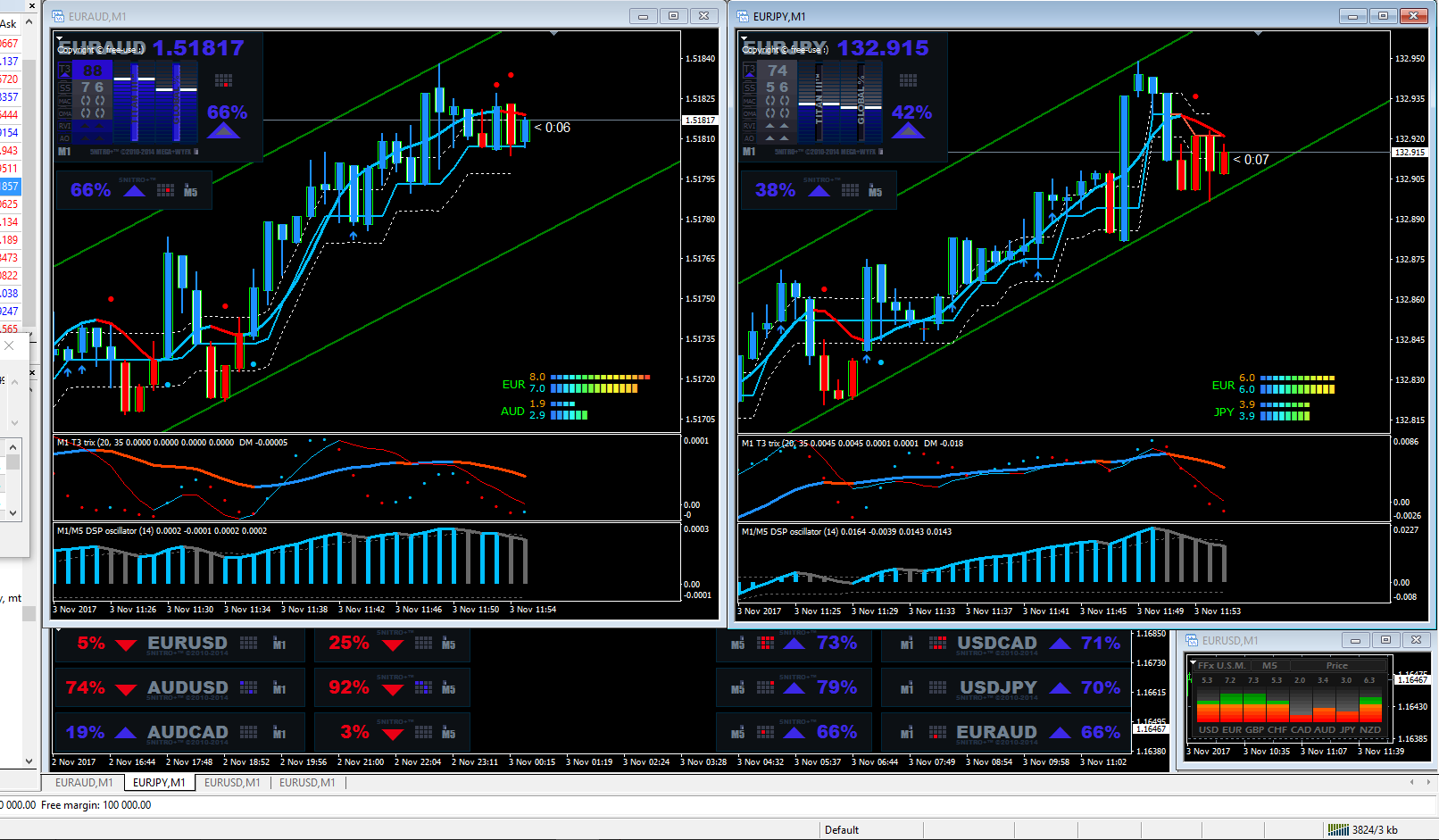 m1 EURUSD 50% trending and H1 GBPUSD -91% breaking in lower corner of your image