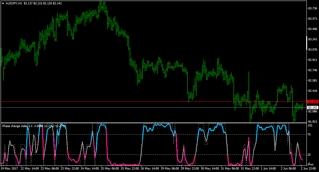 The indicator Phase change Index - with usual prices - high/low levels (color change on levels cross) and invert options