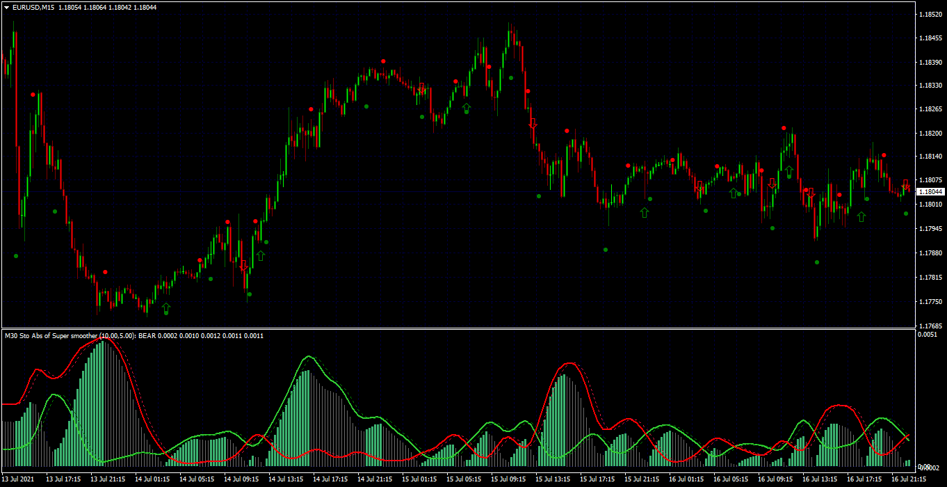 If possible, would you kindly add alerts and arrows to this great indicator! I would like alerts when the lines cross and when the lime green color appears in the bars and change back to grey. I guess it represents volume? Anyway, it's seems like a perfect fit for my system.