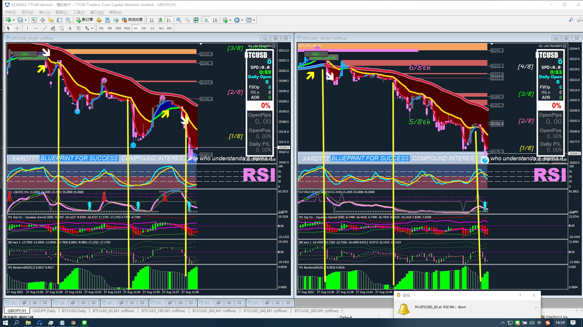 It works well in any time interval and market that is dynamic enough to swing from side to side while on trend, or to swing with enough volatility within a price range to generate good opportunities.